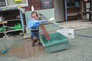 男の子の現在のマイブームは、色んな物を水没させること♡。そして・・コマ。