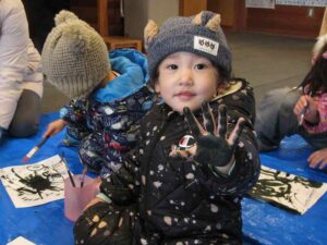 ひょんなことから「書初めしよう!」ということになり、午前中「あそひろ」に参加してくれた子どもたちやママたち♡