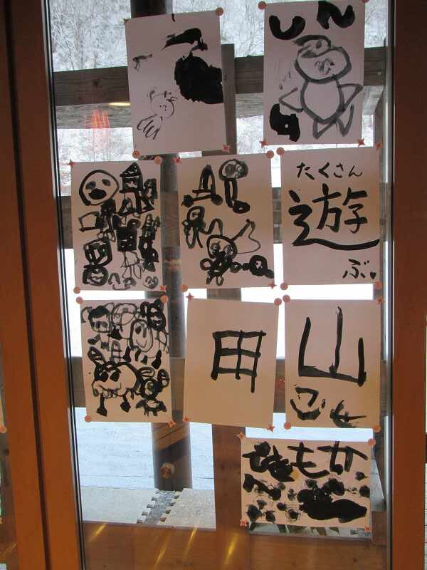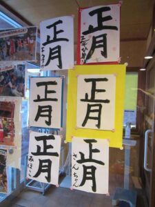 「これ貼って・・♡」「正月という字で対決しよう!」という子どもたちの気持ちか生まれた「あそびあ書初め?展」は・・いつまで続くかな・・。