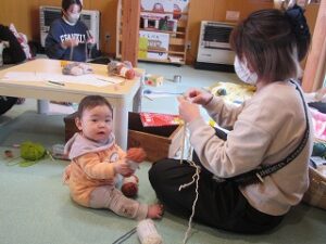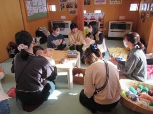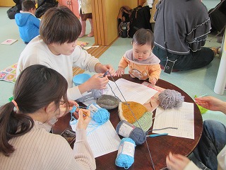 今日参加の中に編み物が初めて!と言うママもいましたが「教えてもらいながらやってみたい!」「可愛い帽子を作ってみたい!」という一心♡