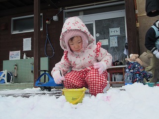 ふわふわの雪で色水遊びもソリ遊びも最高なのに・・・みんなあそひろに来ないかもしれない!と思っていたら