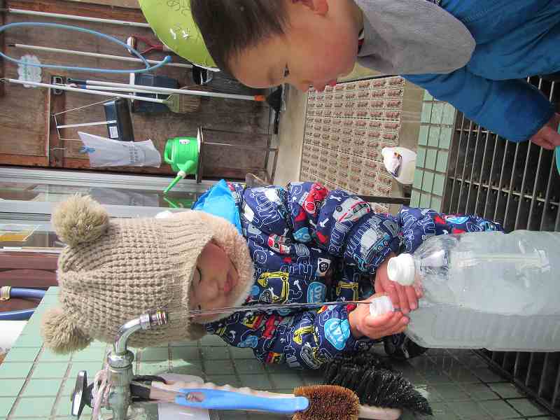 水の量やペットボトルの位置など自分で調整する力がついてきたんだな~・・とその成長がとても嬉しくなりました。